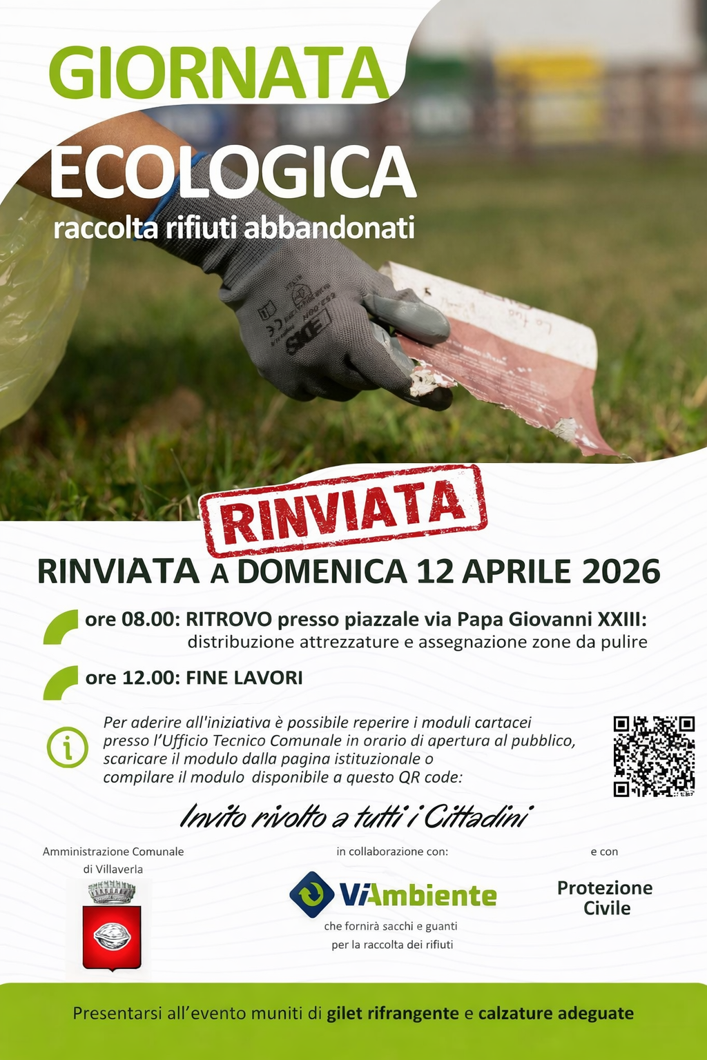 Il comune di Villaverla, in collaborazione con Viambiente SPA e la Protezione Civile, ha organizzato la manifestazione “Giornata Ecologica” edizione 2026.