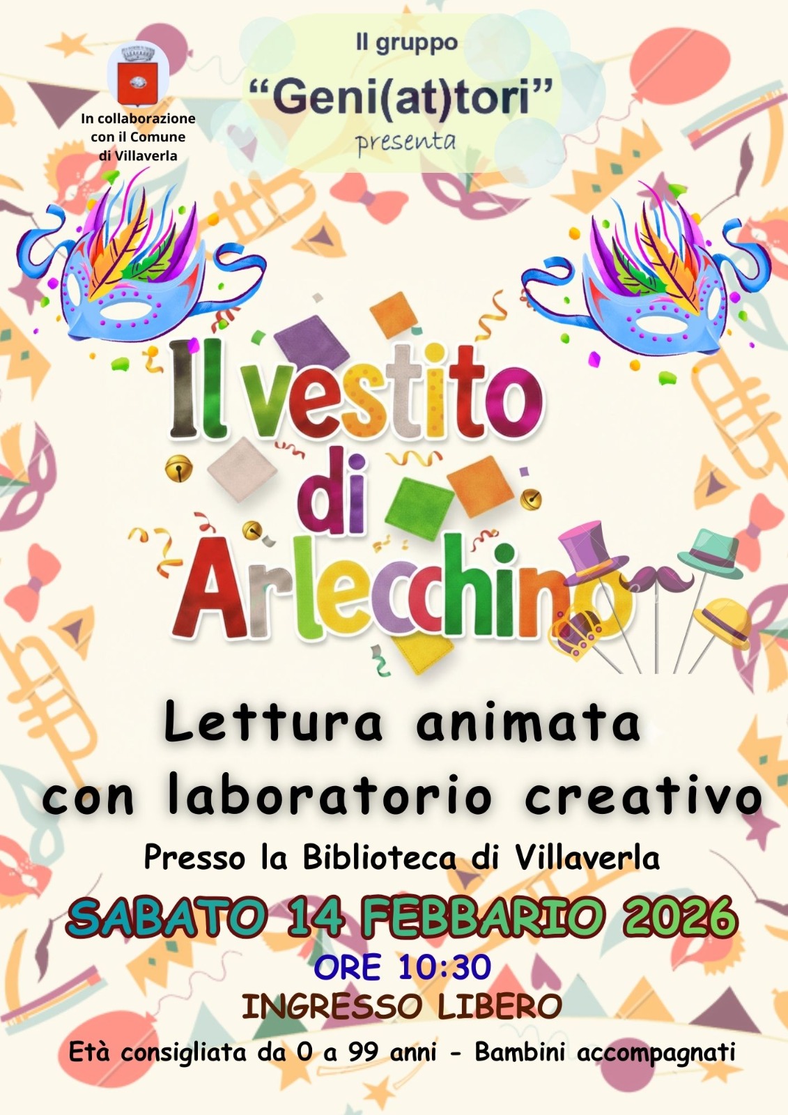 Cos'è Il Gruppo Geni(at)tori presenta "Il vestito di Arlecchino", lettura animata con laboratorio creativo.Età consigliata 0-99 anni - Bambini accompagnati